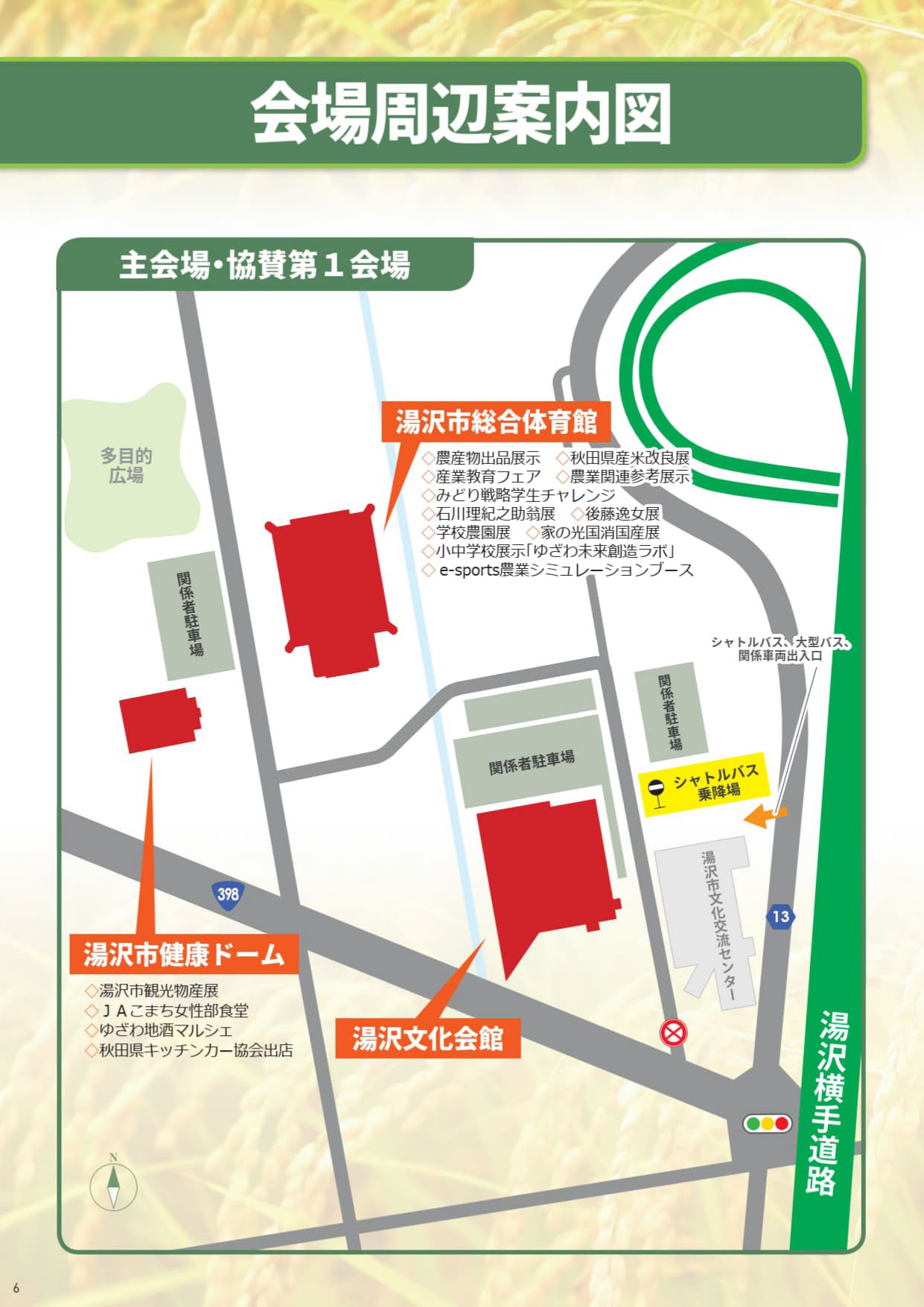 主会場の湯沢市総合体育館と湯沢文化会館では、農産物出品展示や産業教育フェアなどのイベントが行われます。