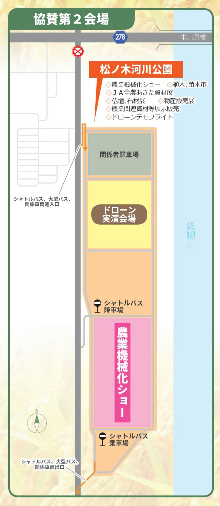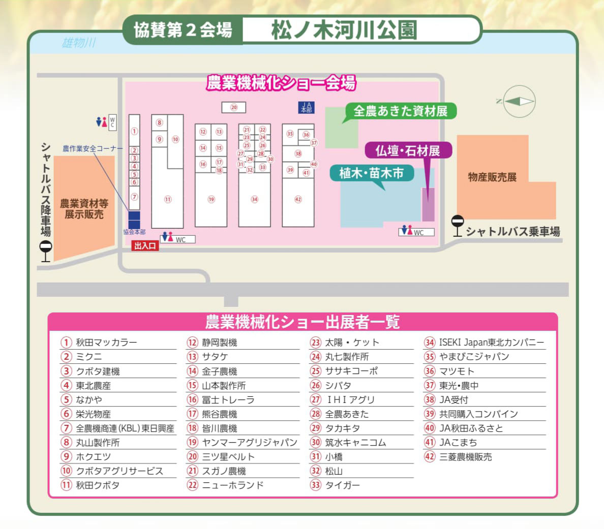 協賛第2会場である松ノ木河川公園では、「農業機械化ショー」や「植木・苗木市」「物産販売展」などが行われます。