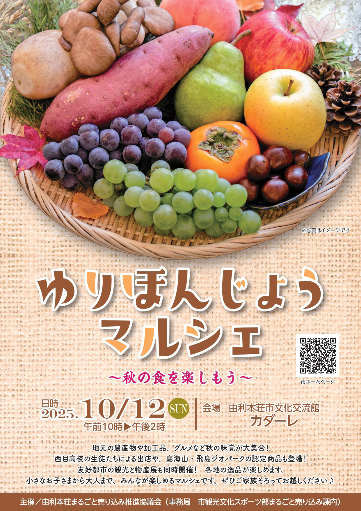「ゆりほんじょうマルシェ~秋の食を楽しもう~」が、由利本荘市のカダーレで10月12日(日)に開催されます。