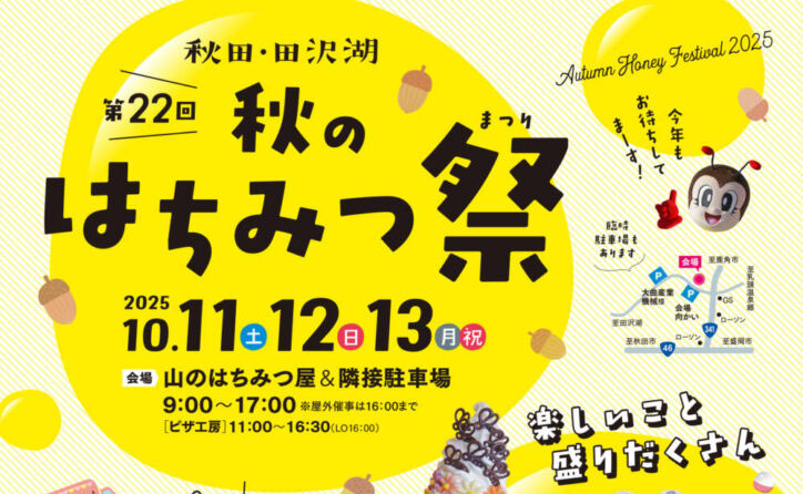 仙北市の『山のはちみつ屋』で、10月11日(土)~13日(月・祝)に「秋のはちみつ祭」が開催されます。