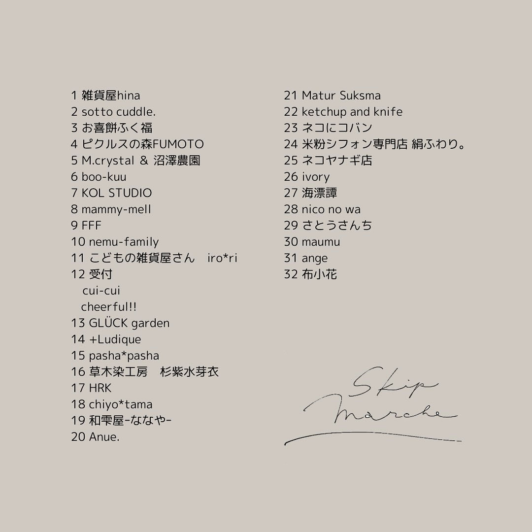 出店者の情報は、Skip marche 公式Instagramで紹介されていきますので、ぜひチェックしてみてくださいね。