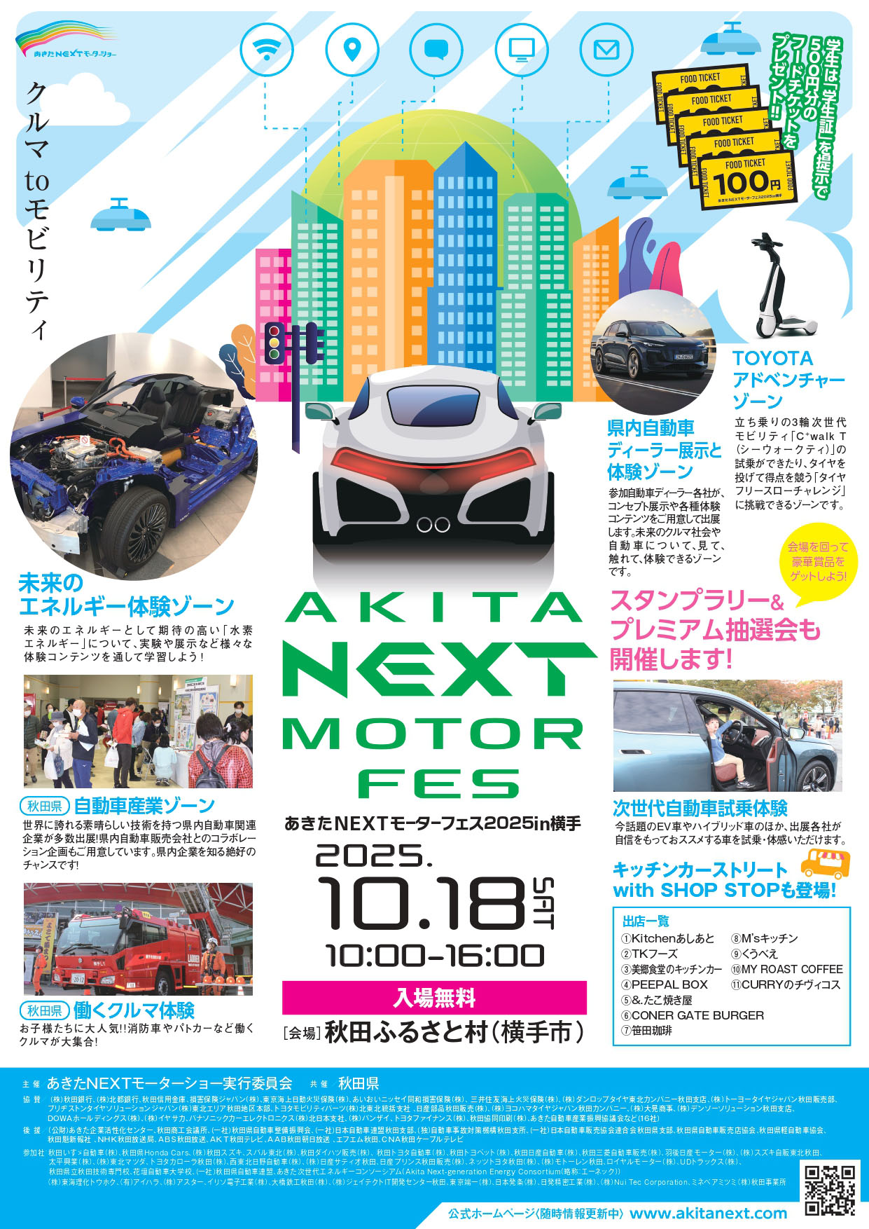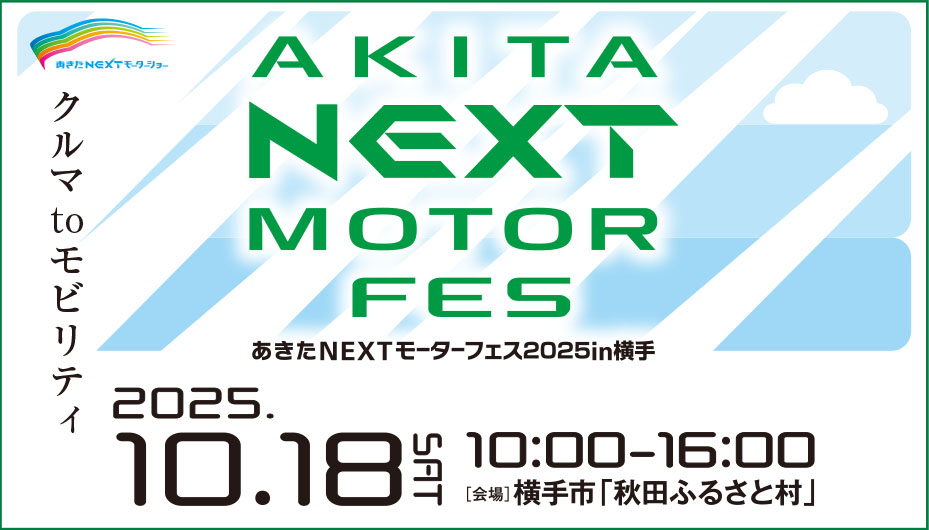 「あきたNEXTモーターフェス2025in横手」が、秋田ふるさと村で10月18日(土)に開催されます。