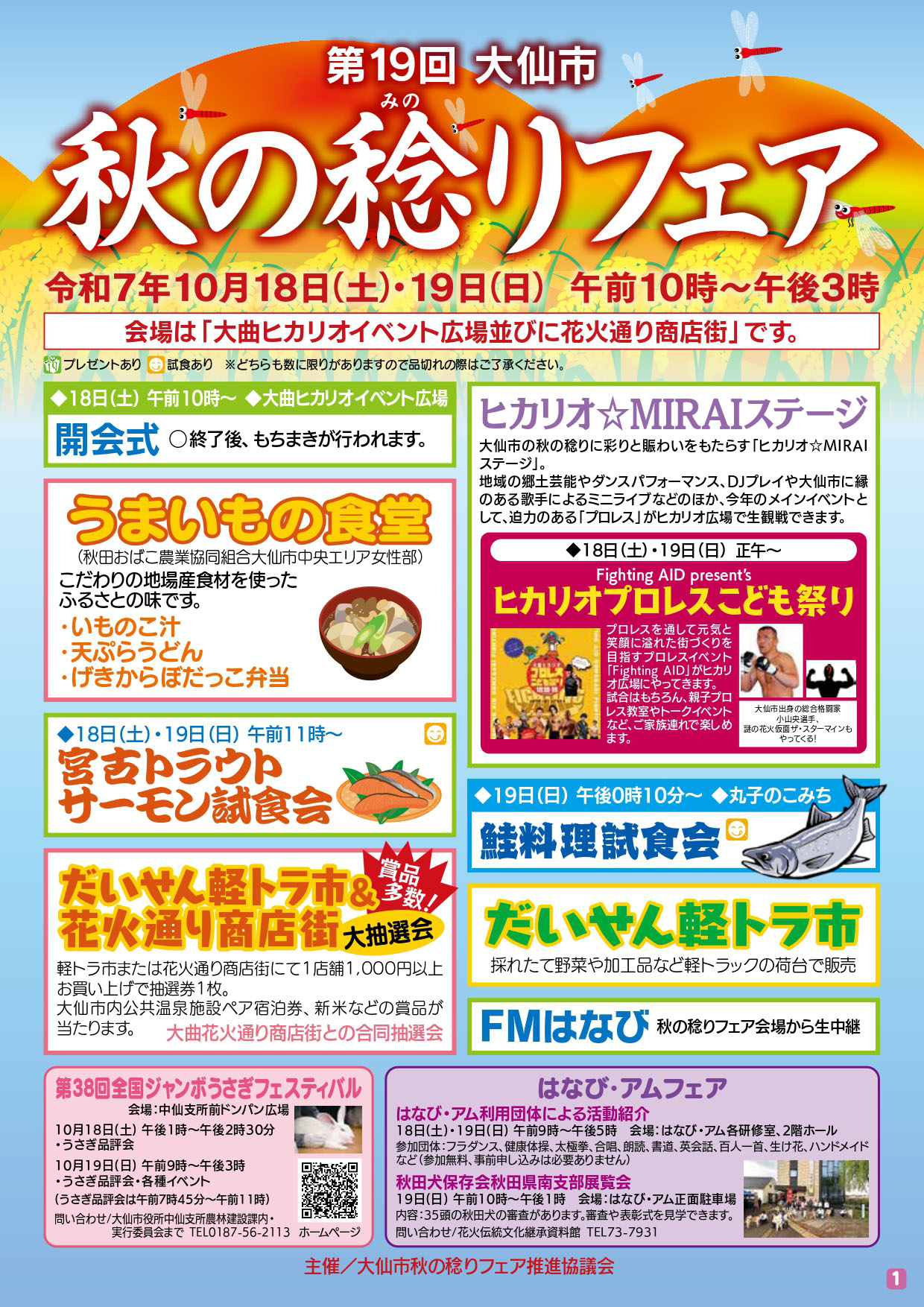 「大仙市 秋の稔りフェア」が10月18日(土)~19日(日)に開催されます。