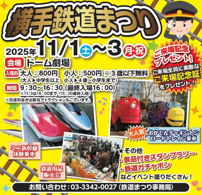 「横手鉄道まつり」が11月1日(土)~3日(月・祝)に秋田ふるさと村で開催されます。