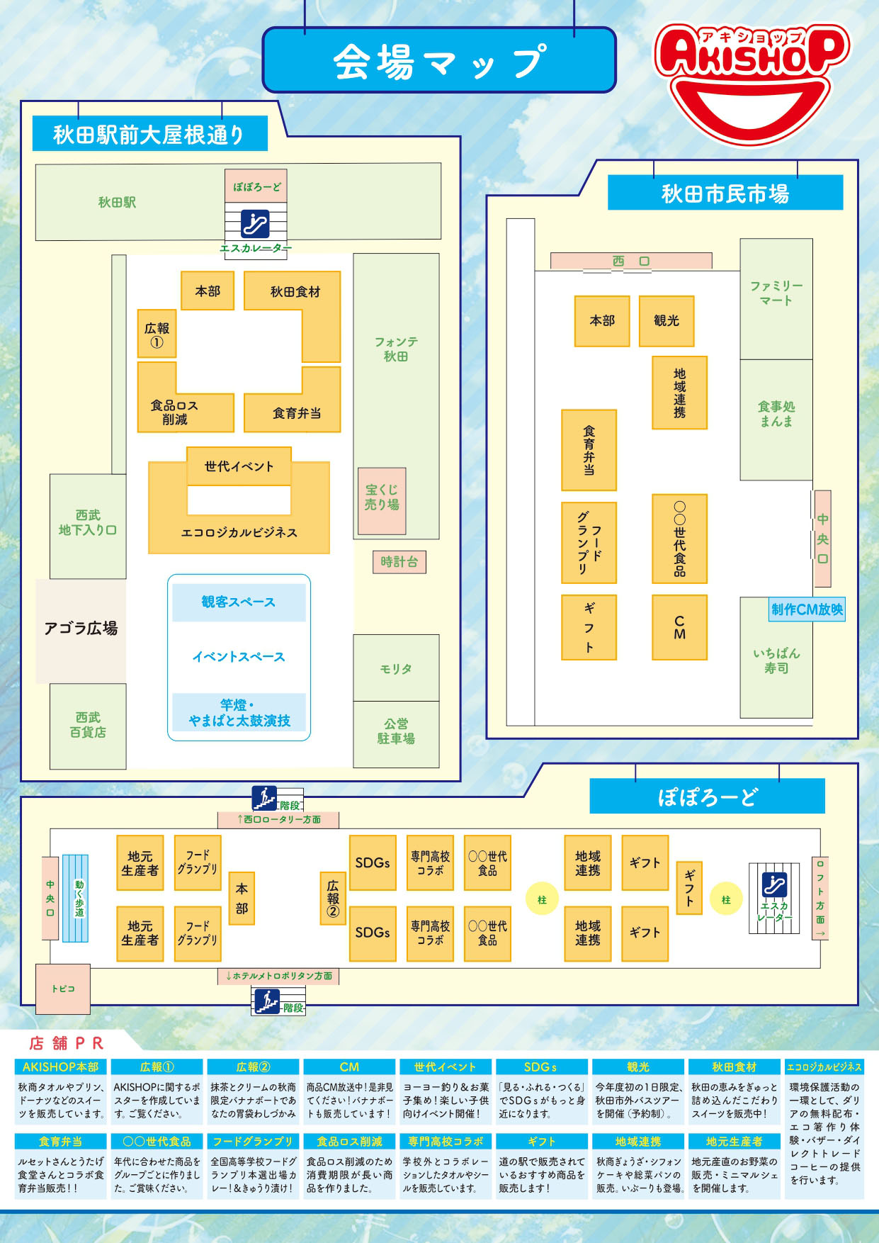 会場:秋田駅前大屋根通り、秋田市民市場、アゴラ広場、ぽぽろーど