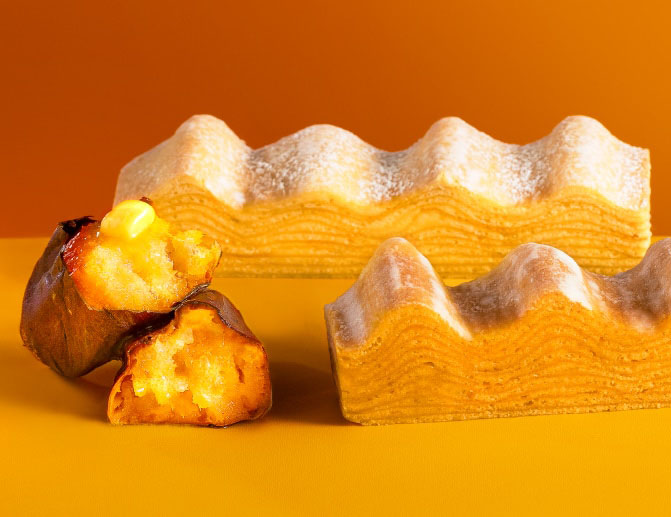 コク豊かな味わいで、ねっとりとした蜜芋の甘みとバターの香りがたまらない、秋限定のバームクーヘンですので、ぜひご賞味ください。