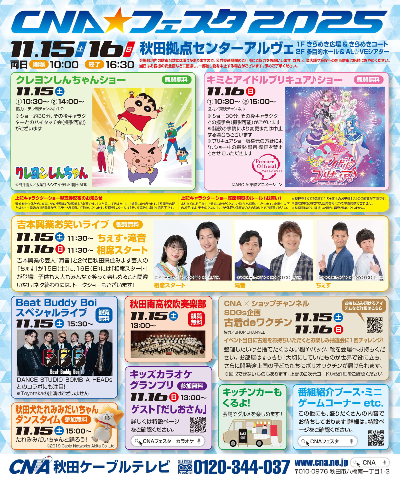 秋田ケーブルテレビの「CNA★フェスタ2025」が、秋田拠点センターアルヴェで開催されます。