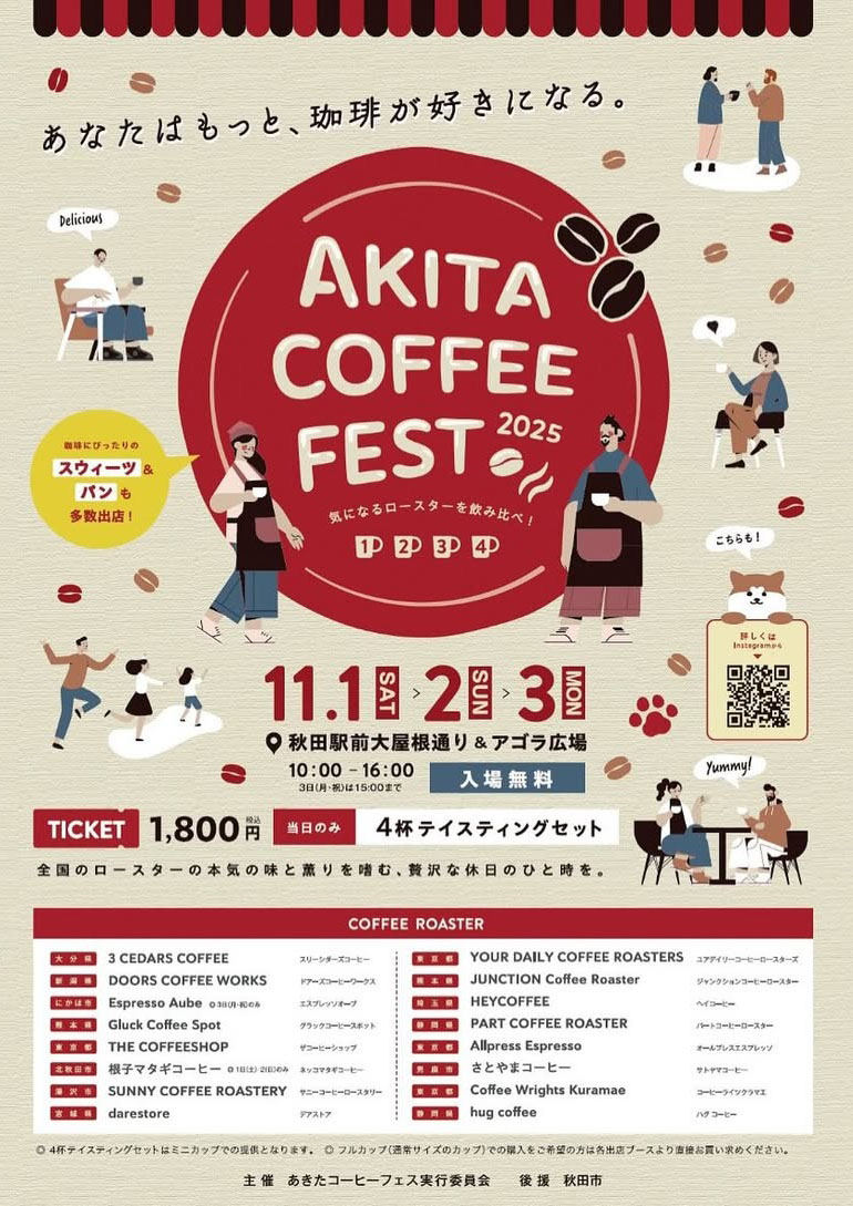 「あきたコーヒーフェス」が、秋田駅前大屋根通りとアゴラ広場で開催されます。