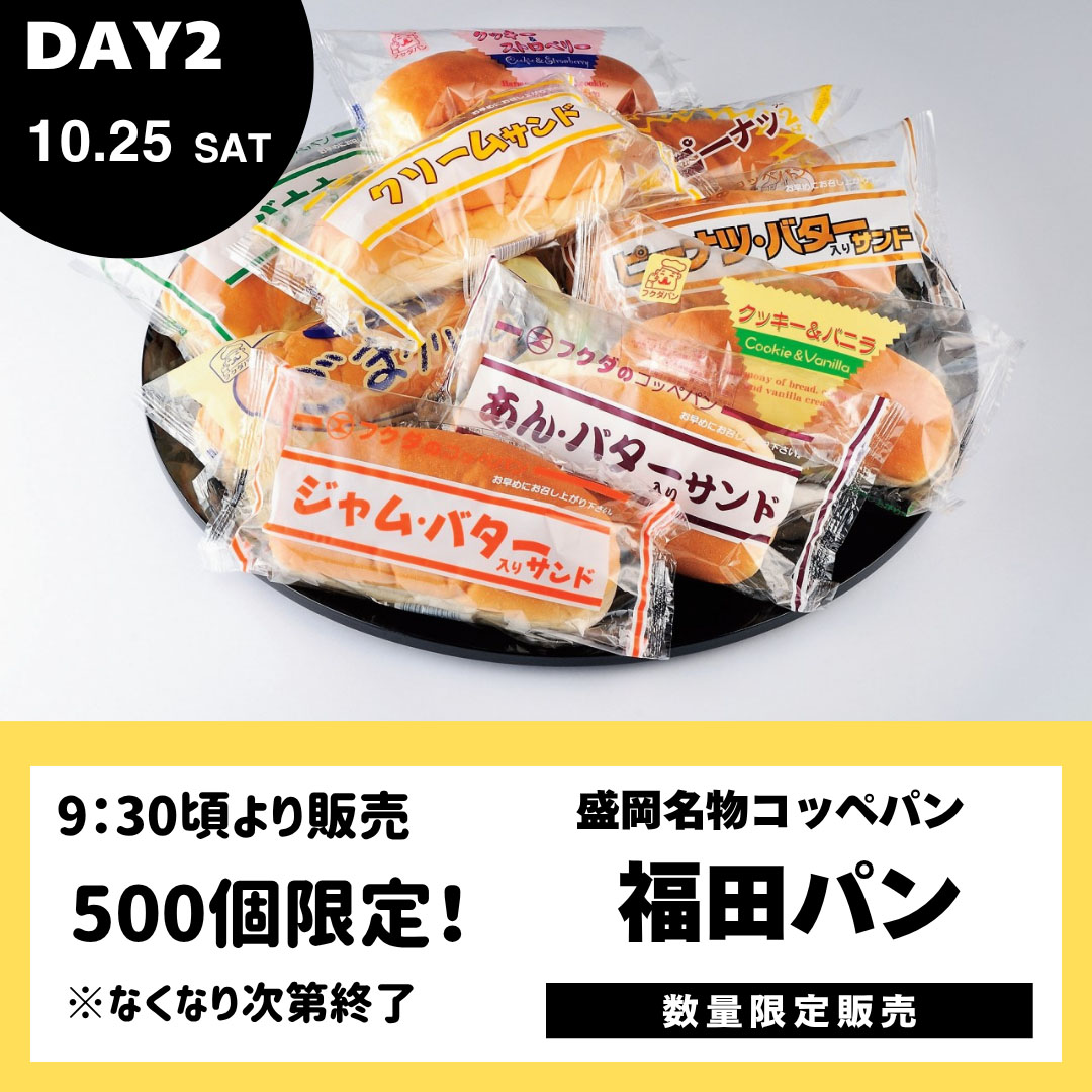 25日(土)は盛岡名物の「福田パン」を500個限定で販売します。