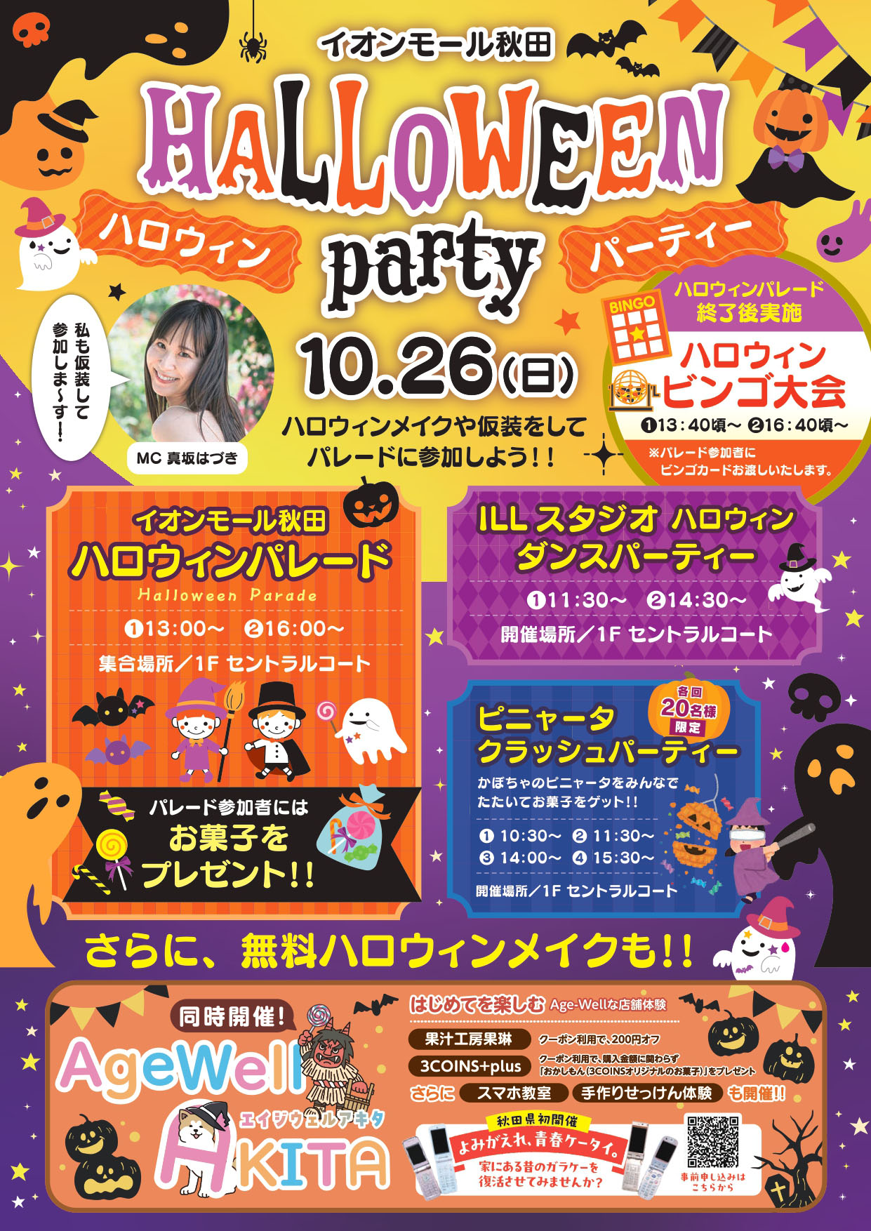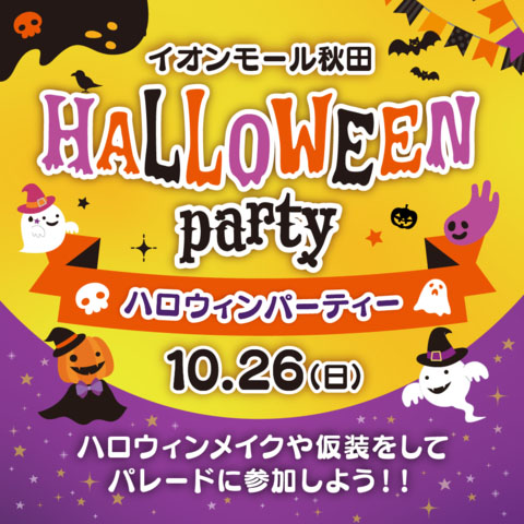 イオンモール秋田で「ハロウィンパーティー」が10月26日(日)に開催されます。