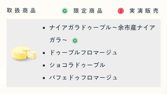 この他にも、北海道の代表的な白ブドウ「ナイアガラ」を使用した、限定商品の「ナイアガラドゥーブル」や…