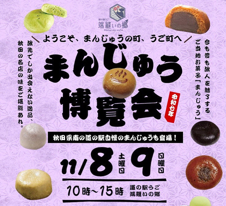 【羽後町】「まんじゅう博覧会」を道の駅うごで開催!秋田の名店の味が大集合(11/8~9)