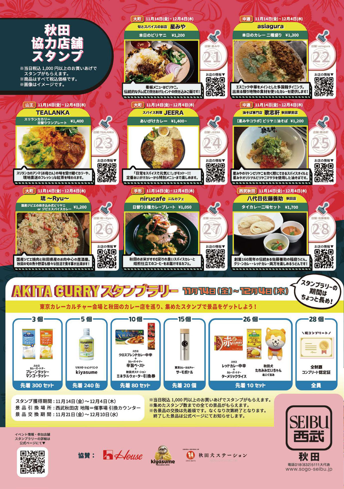 会場の店舗と、地元秋田の協力店舗を巡る「カレースタンプラリー」も同時開催されます。