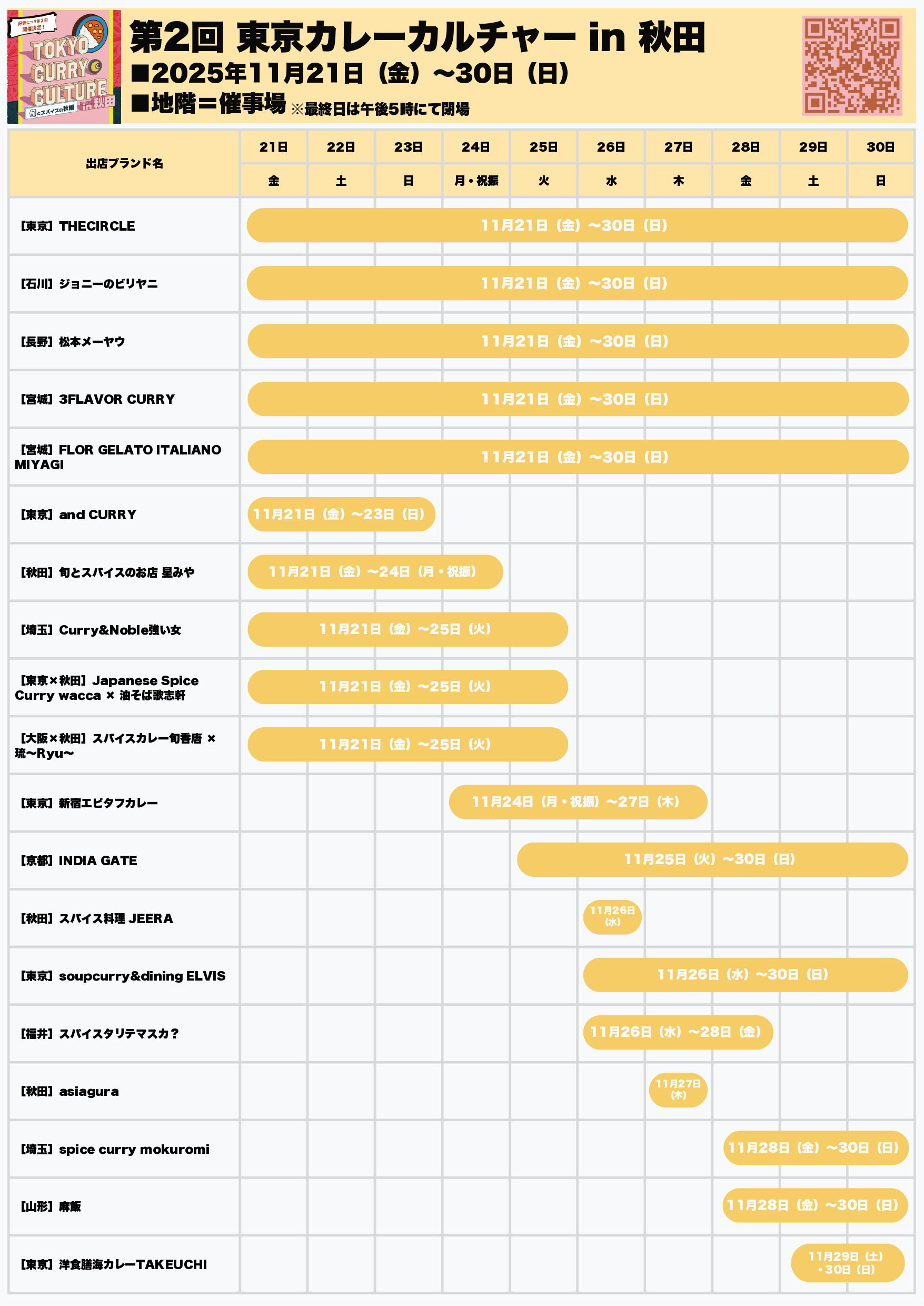 【秋田市】「東京カレーカルチャーin秋田」を西武秋田店で開催します(11/21~30)