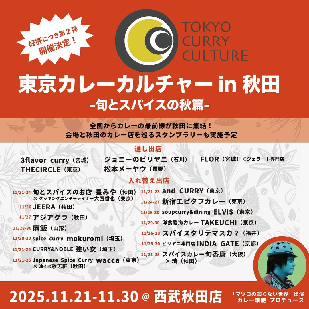 「東京カレーカルチャーin秋田 ~旬とスパイスの秋編~」が西武秋田店で開催されます。