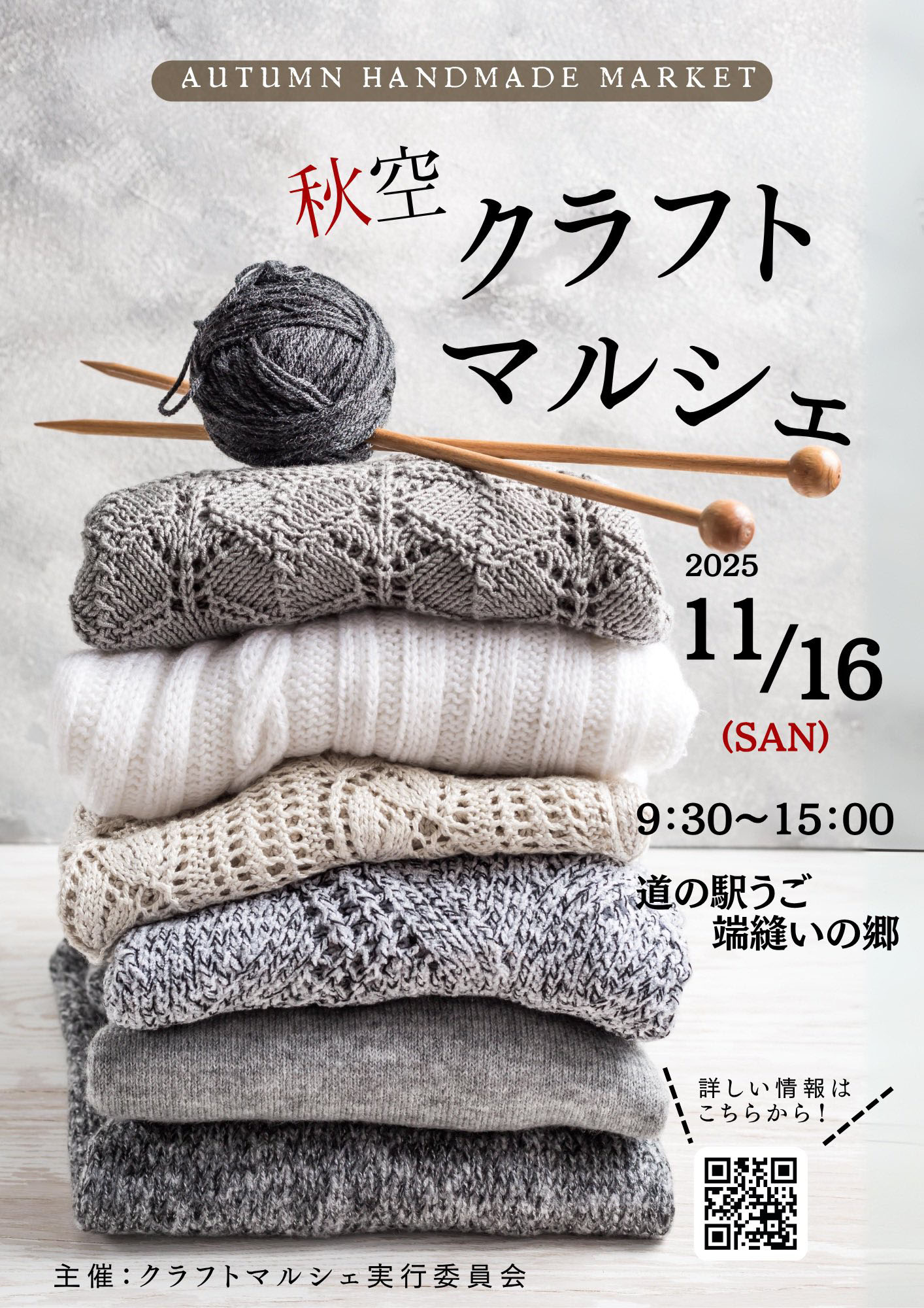 「秋空クラフトマルシェ」が、道の駅うごで11月16日(日)に開催されます。