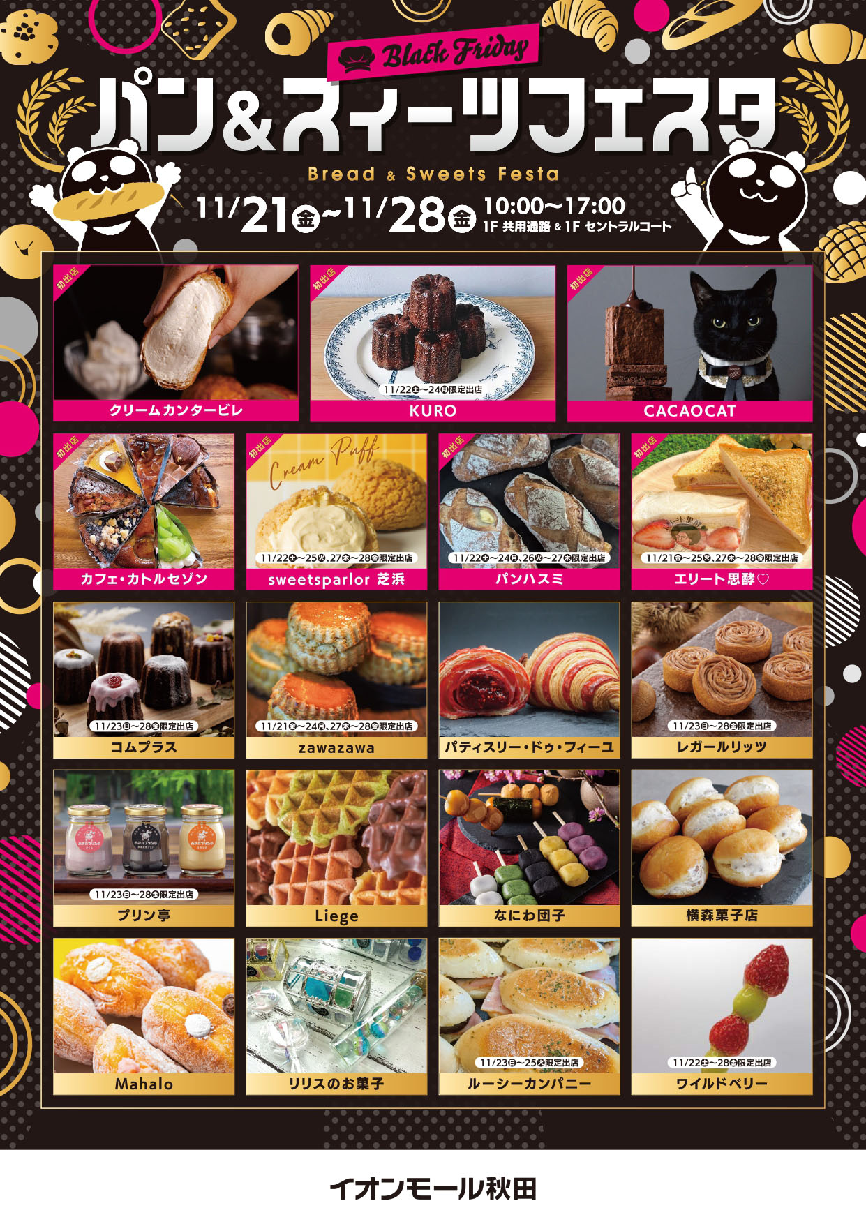 【秋田市】「BLACK FRIDAY パン&スイーツフェスタ」をイオンモール秋田で開催!(11/21~28)