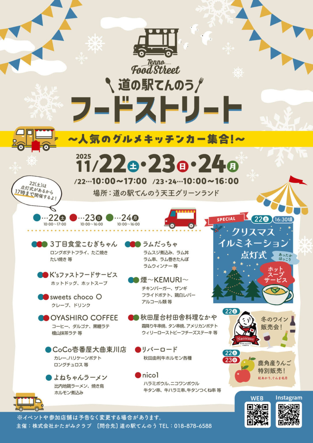 【潟上市】「道の駅てんのう フードストリート」を開催!キッチンカーが大集合(11/22~24)