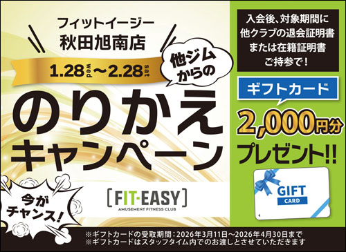 【秋田市】フィットネスクラブ「FIT-EASY秋田旭南店」が2月12日オープン!