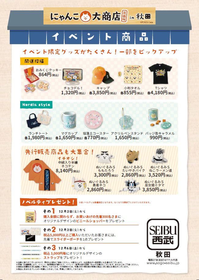 【秋田市】「にゃんこ大商店 出張所」を西武秋田店で開催!にゃんこ大戦争グッズが大集合(12/2~8)
