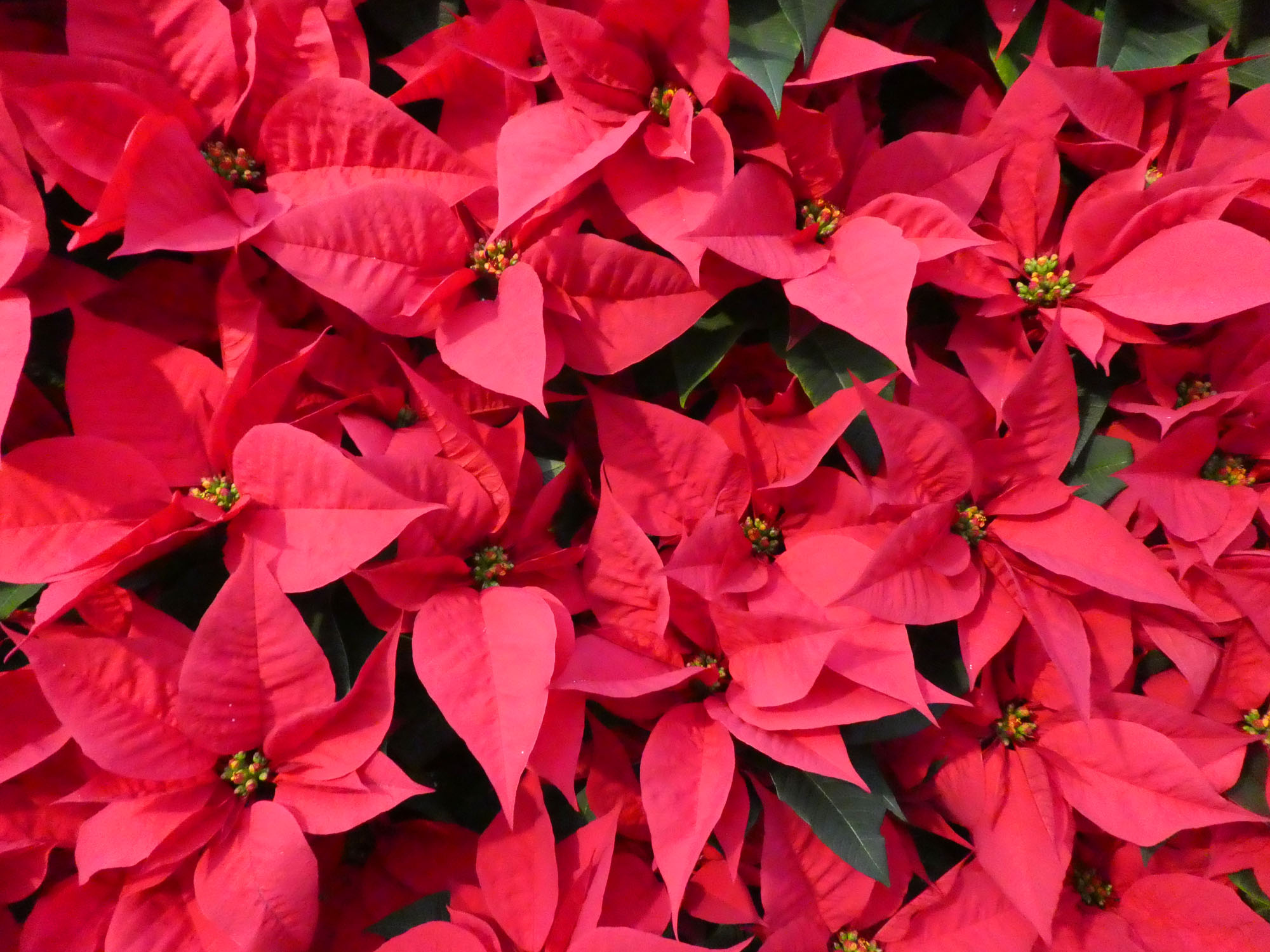 ポインセチアタワーは高さが4メートルあり、本物のポインセチアの鉢植え1,000鉢を組み合わせて作られています。