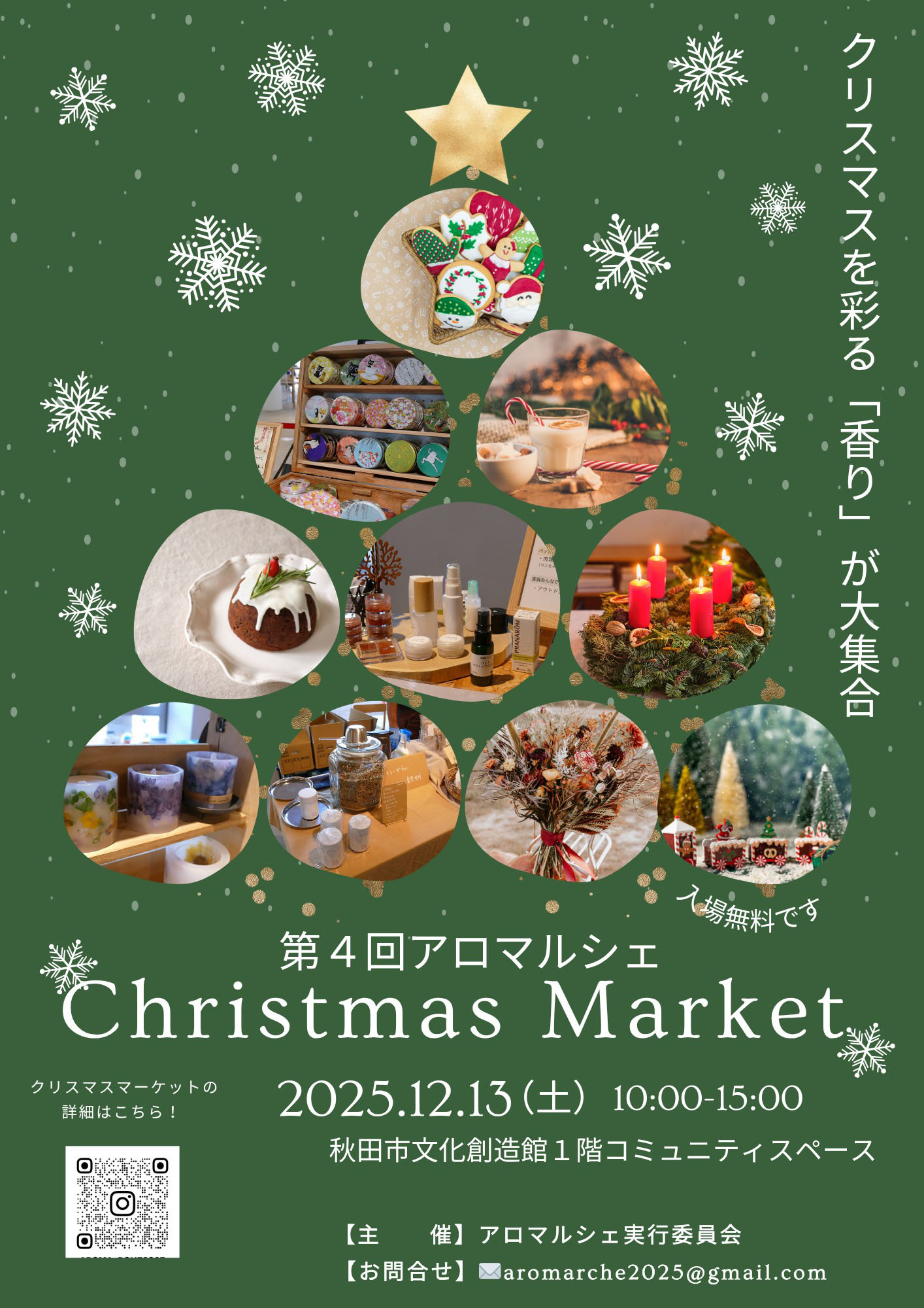 【秋田市】「アロマルシェ クリスマスマーケット」を秋田市文化創造館で12月13日開催!