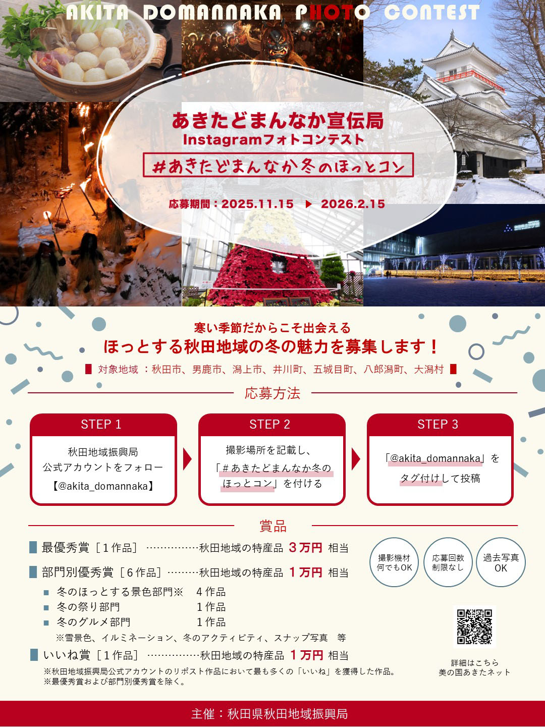 【秋田県】「あきたどまんなか宣伝局 Instagramフォトコンテスト」を開催します(11/15~2/15)