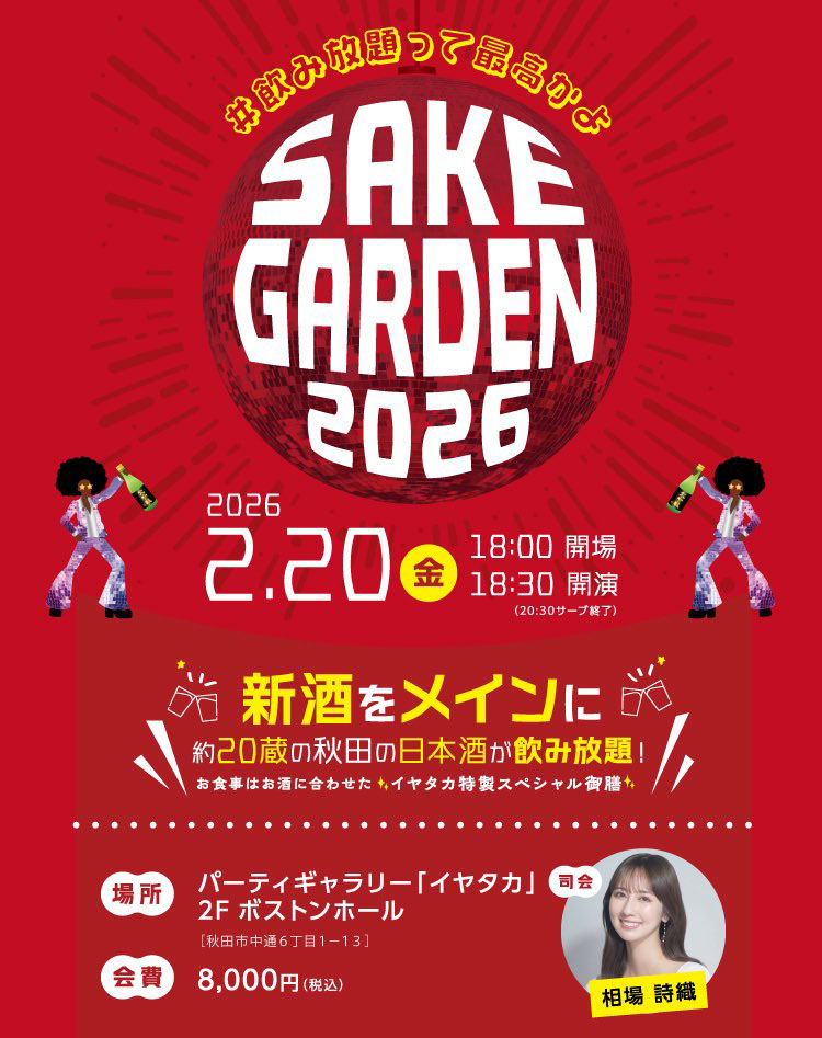 【秋田市】「SAKE GARDEN2026 #飲み放題って最高かよ」が2月20日に開催されます