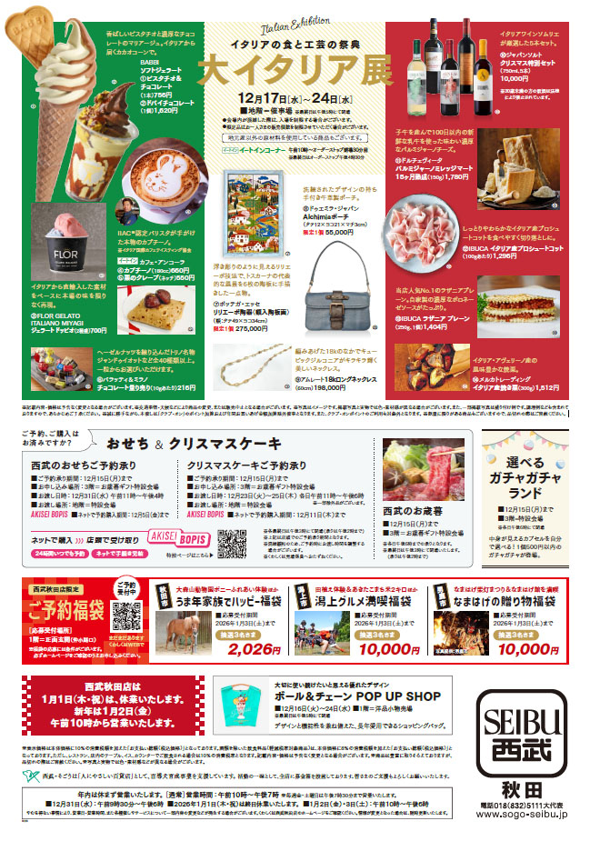 【秋田市】西武秋田店で「大イタリア展」を開催!イタリアの食と工芸の祭典(12/17~24)