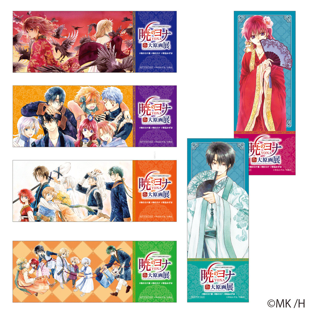ミュージアムショップでは公式グッズが販売され、「暁のヨナ大原画展」グッズを税込み5,000円以上お買い上げのお客様には、コミックスの総扉絵を使用した「色紙風カード」がランダム配布されます。