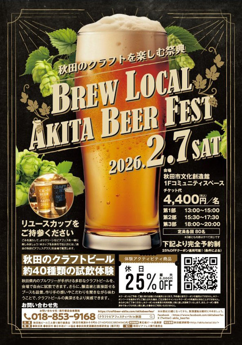 【秋田市】「BREW LOCAL AKITA BEER FEST」を秋田市文化創造館で2月7日開催!