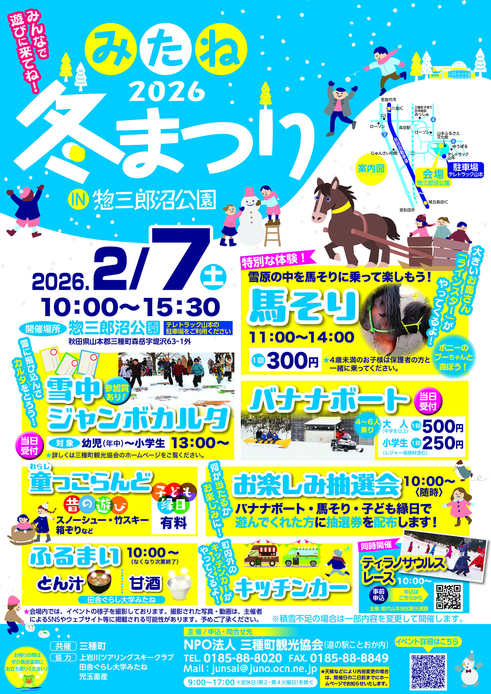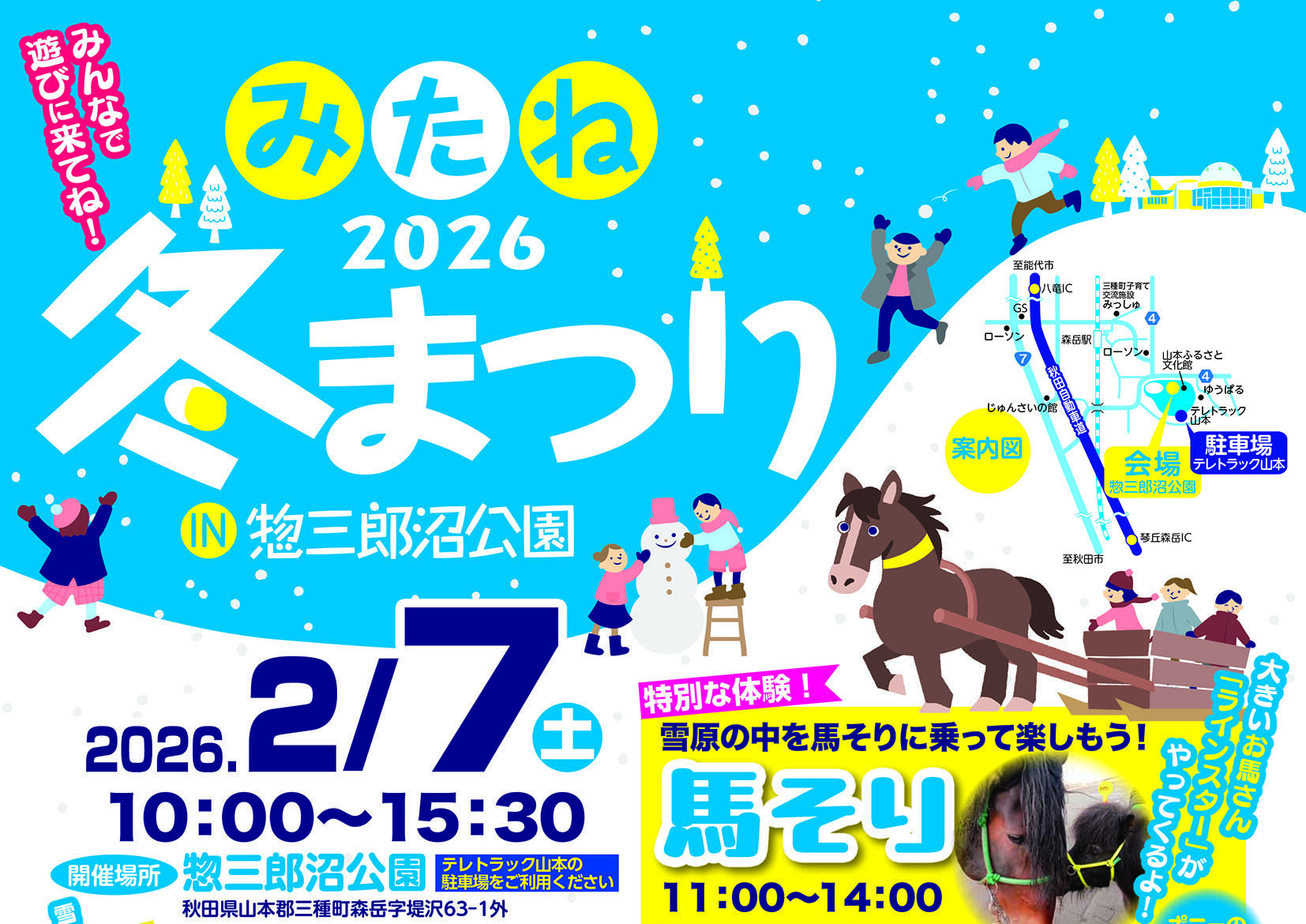 【三種町】「みたね冬まつり2026」を惣三郎沼公園で2月7日開催!