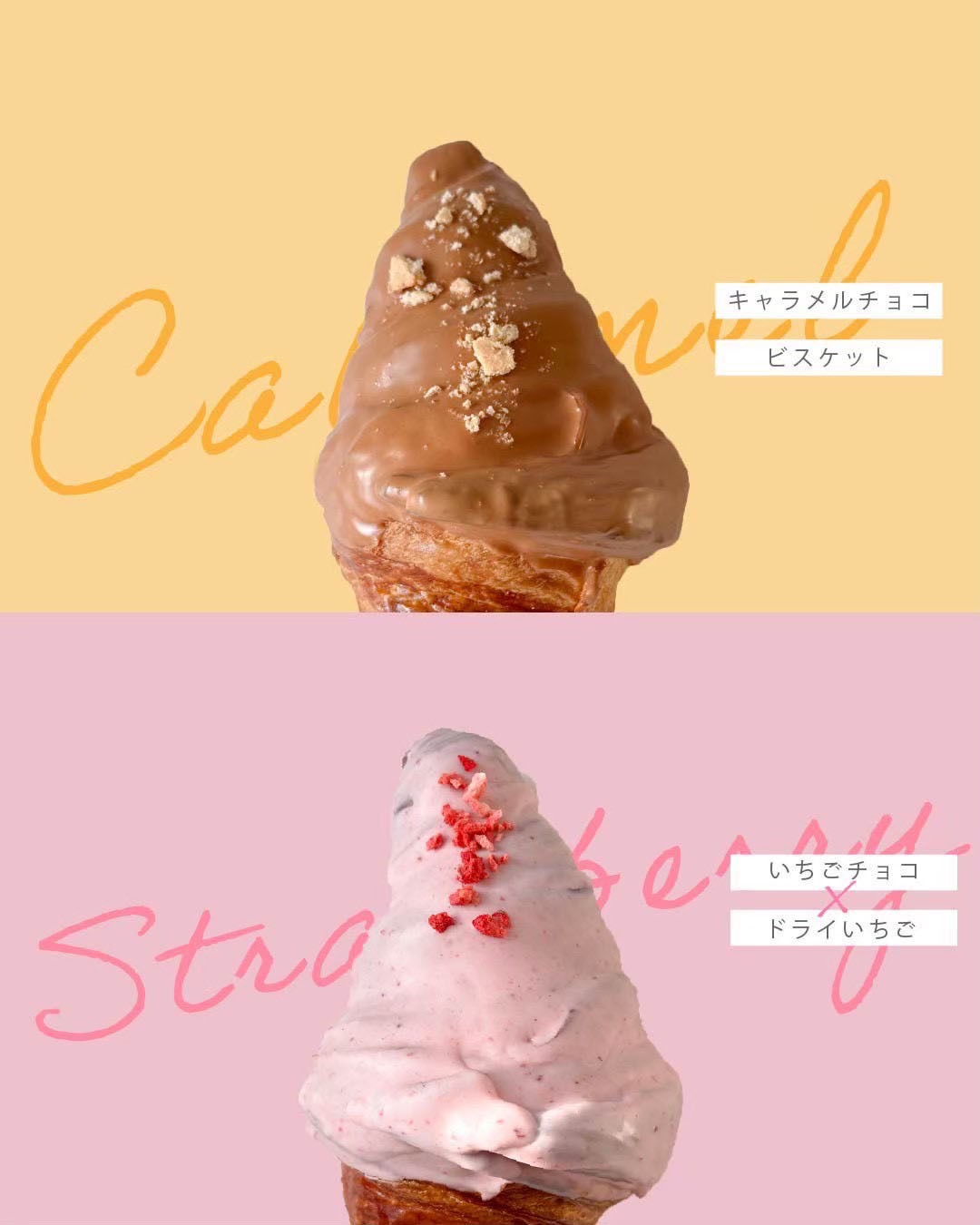 レギュラー商品4種類に加えて、1月23日(金)から販売開始する限定フレーバーの「いちご」と「キャラメル」も新登場します。