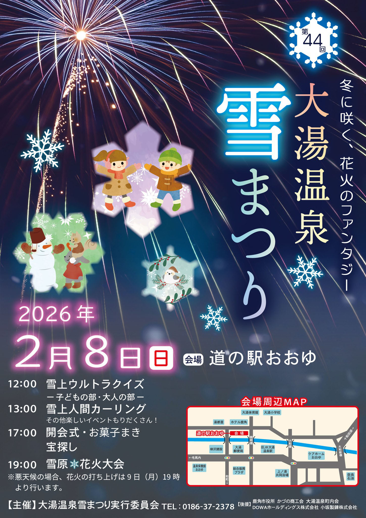 「大湯温泉雪まつり」が、道の駅おおゆで2月8日(日)に開催されます。