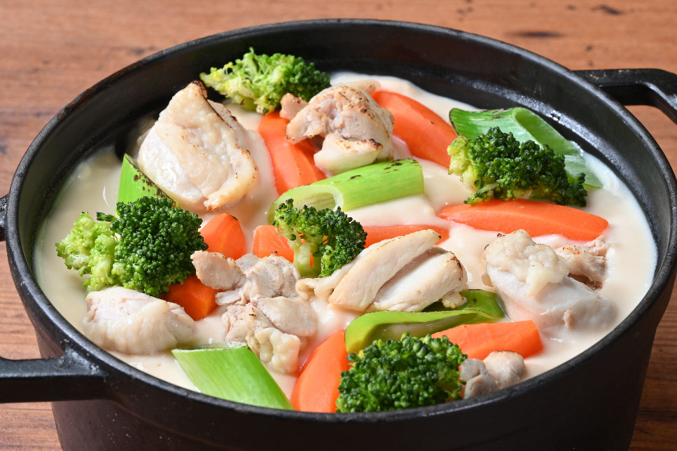 秋田の冬に育まれた野菜を使用した「秋田野菜と雪中ネギのクリームシチュー」