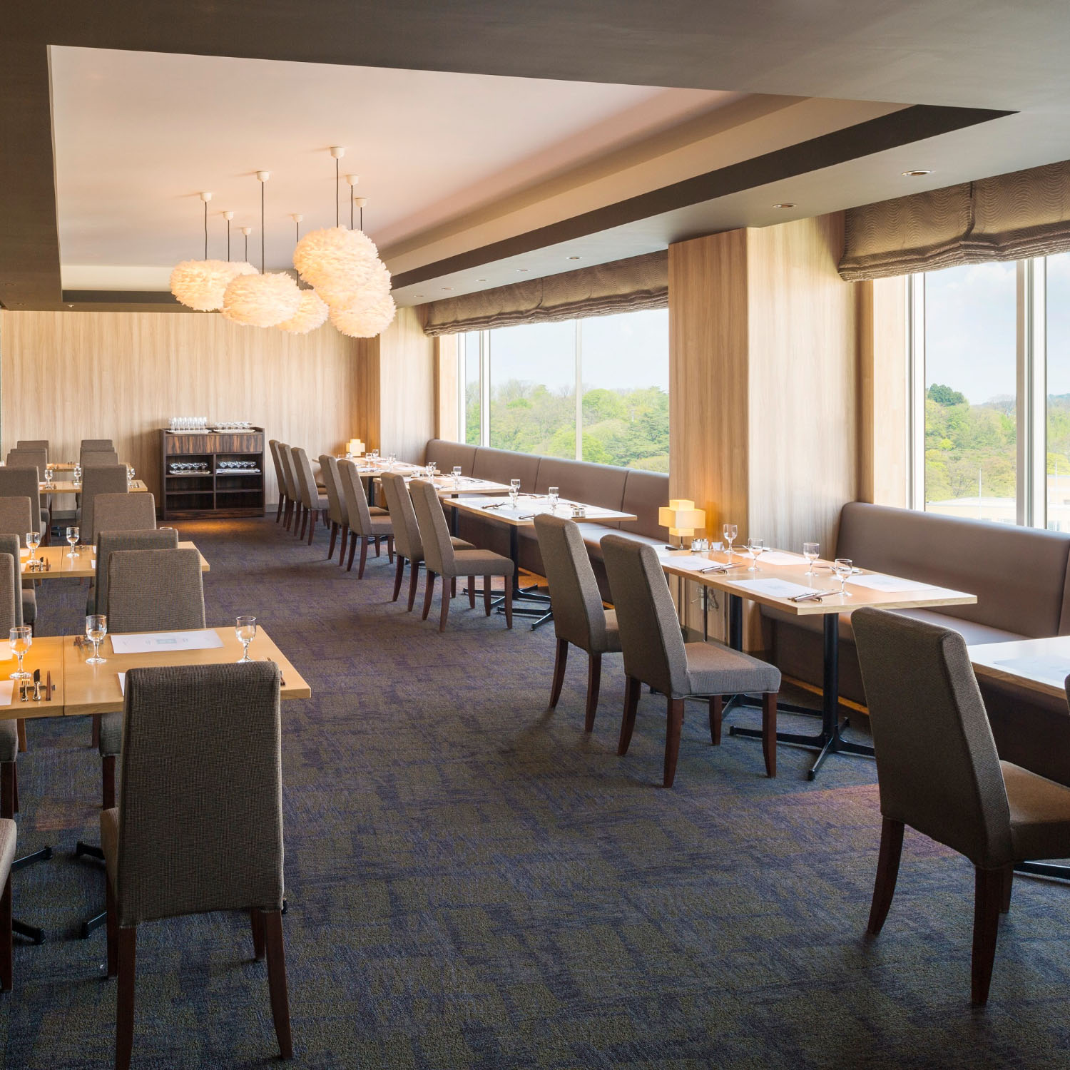 地上50メートルからの景色を眺めながら食を楽しむ開放的なダイニングです。