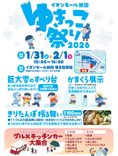 【秋田市】「イオンモール秋田 ゆきっこ祭り」を開催!(1/31~2/1)
