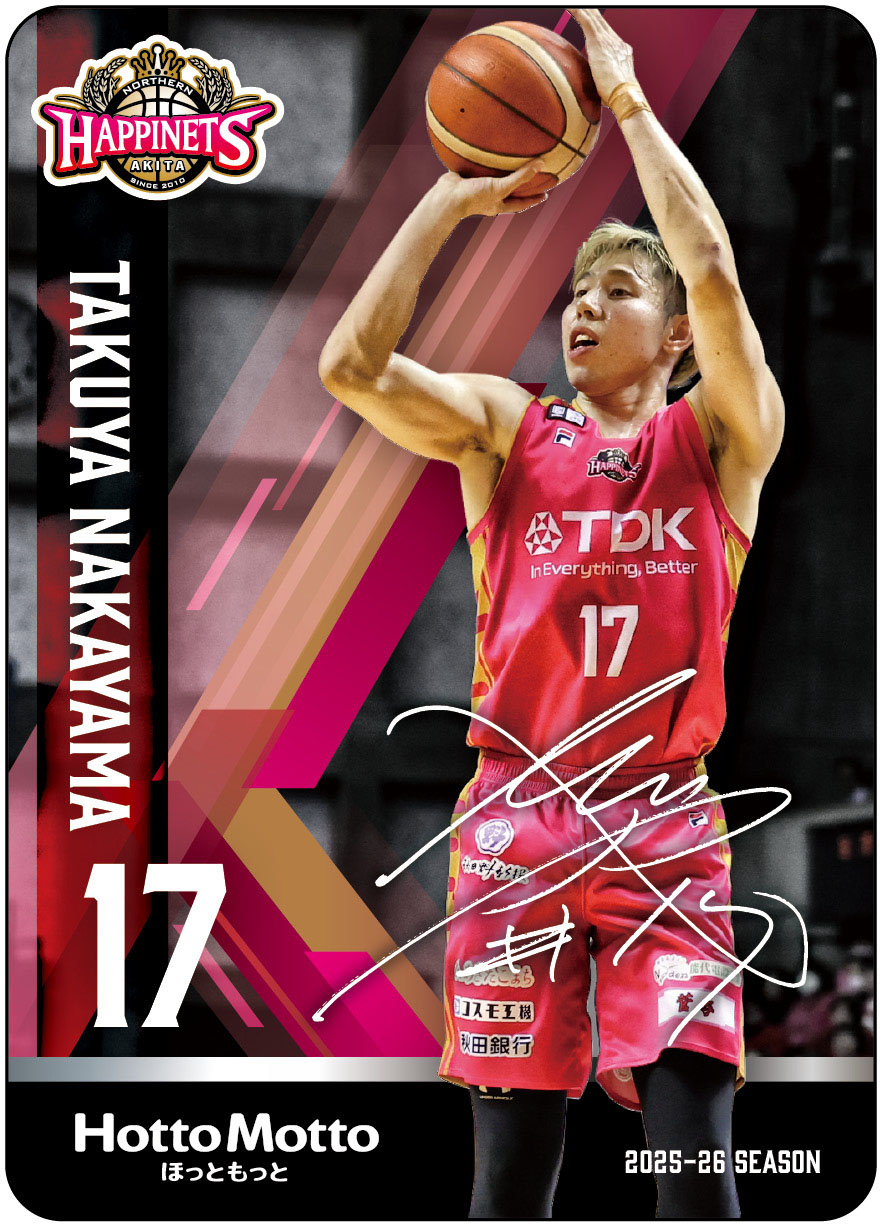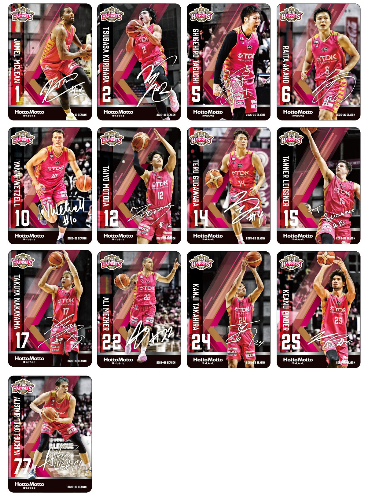 秋田ノーザンハピネッツ弁当1個に付き、Bリーグ2025-26シーズンのオリジナル選手カードが1枚付いてきます。