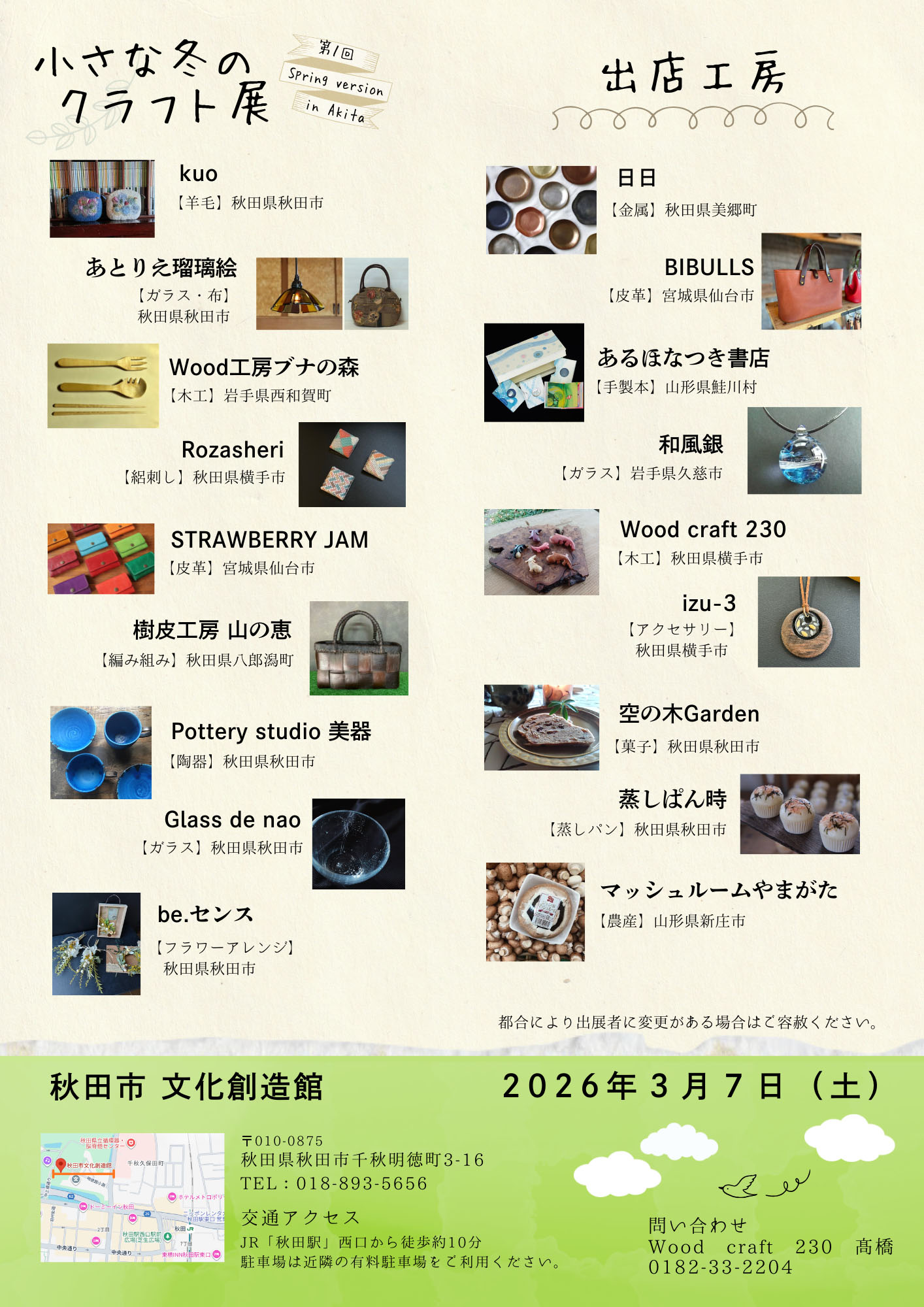 【秋田市】「小さな冬のクラフト展」を秋田市文化創造館で3月7日開催!