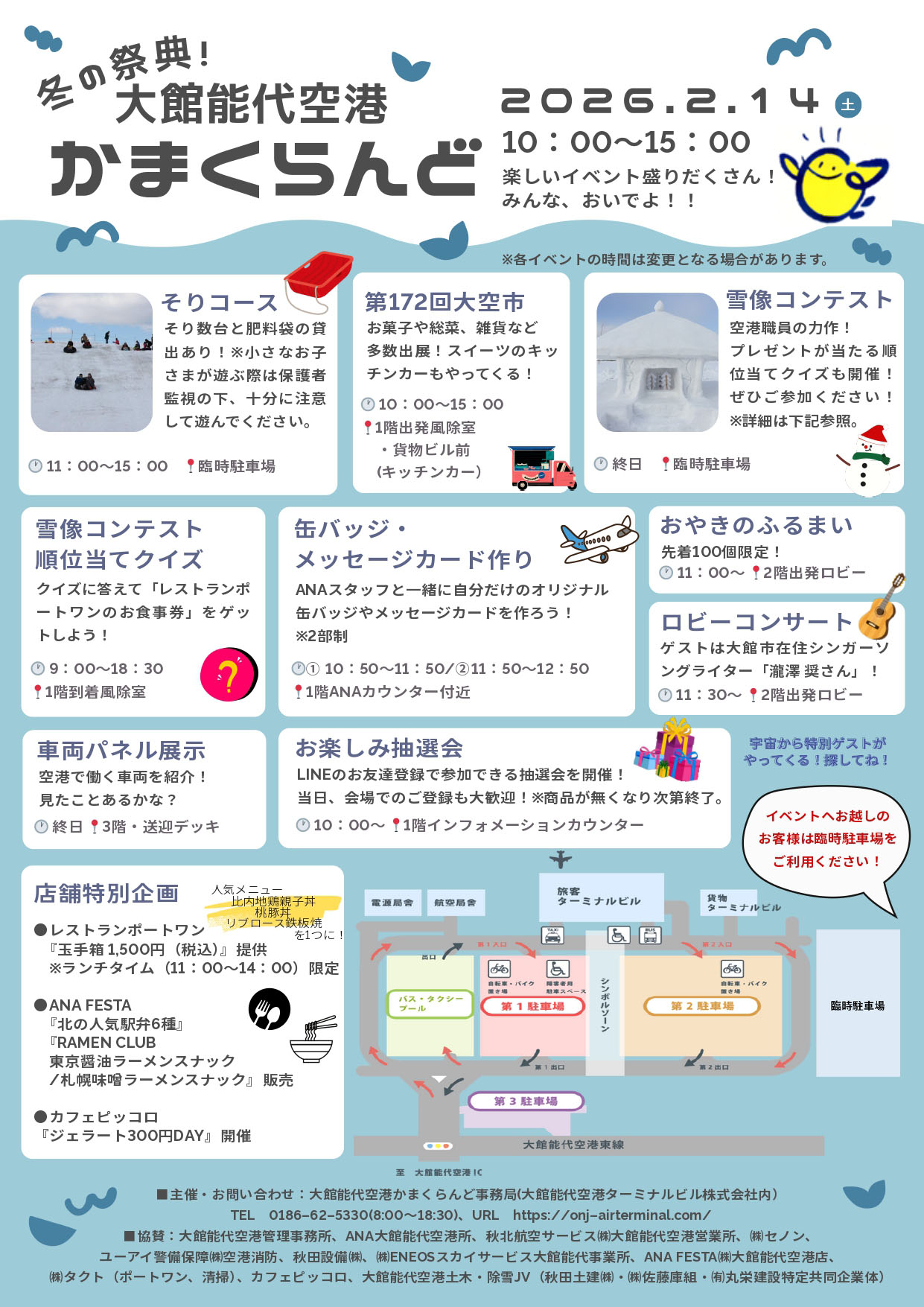 「大館能代空港かまくらんど」が2月14日(土)に開催されます。