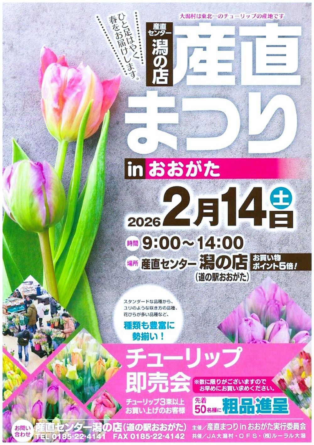 【大潟村】道の駅おおがたで「産直まつり」を2月14日開催!チューリップ即売会など