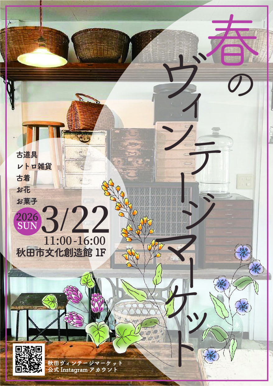 【秋田市】「春のヴィンテージマーケット」を秋田市文化創造館で3月22日開催します
