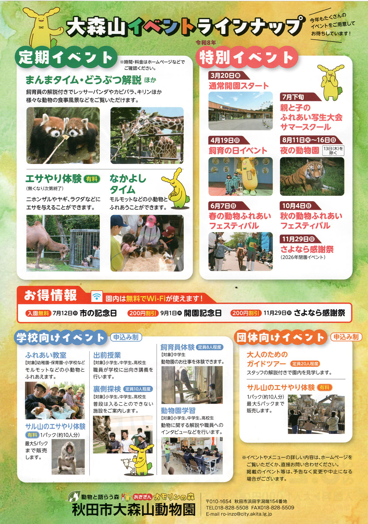 定期イベントや特別イベントなど、今年も大森山動物園でたくさんのイベントを楽しむことができますので、ぜひご来園ください。