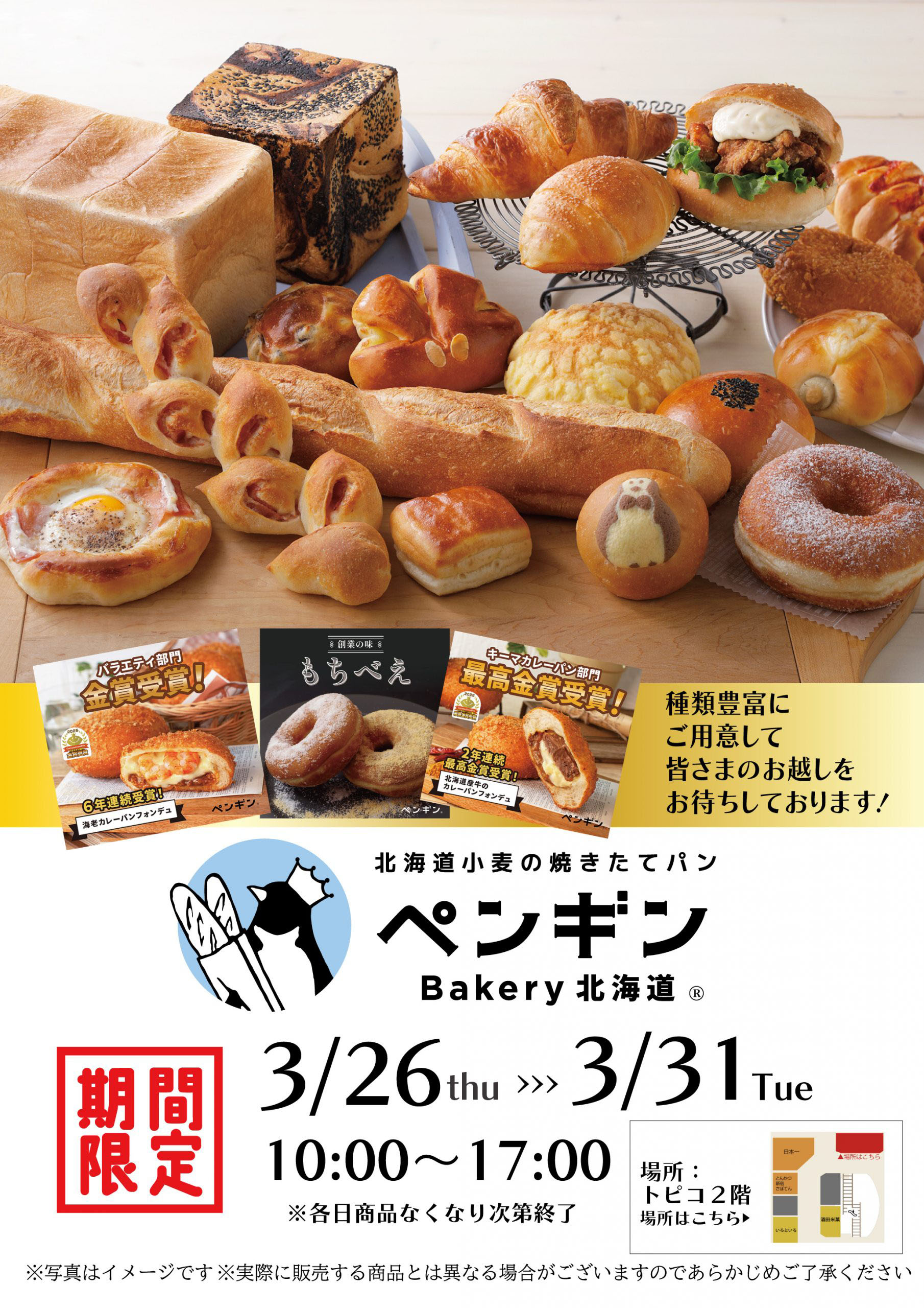 【秋田市】「ペンギンベーカリー」が秋田駅ビル・トピコに期間限定出店!(3/26~31)