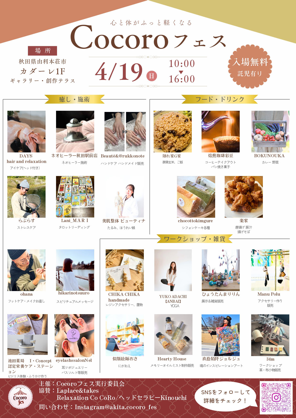 【由利本荘市】心と体がふっと軽くなる「Cocoroフェス」をカダーレで4月19日開催します