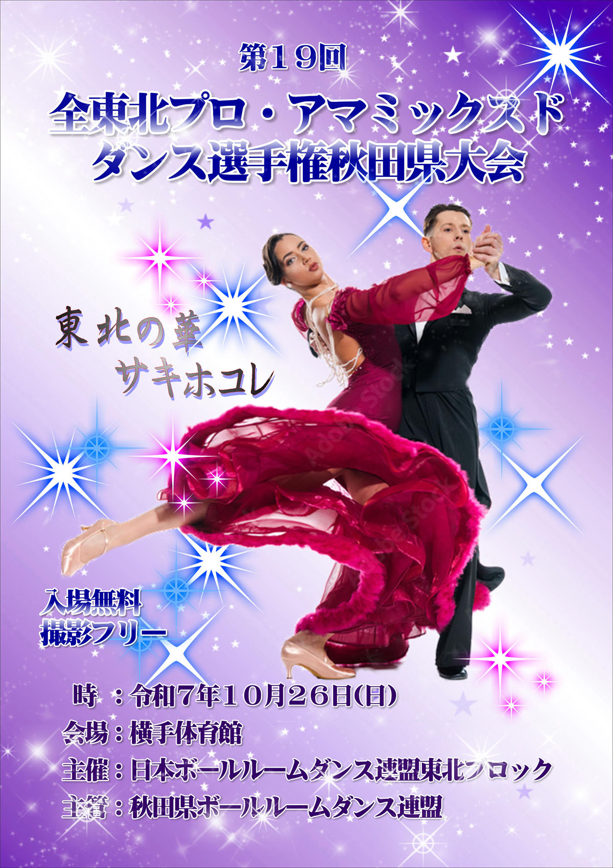 全東北プロ・アマミックスド ダンス選手権大会 秋田県大会 | 横手市・横手体育館 | 2025/10/26(日) |