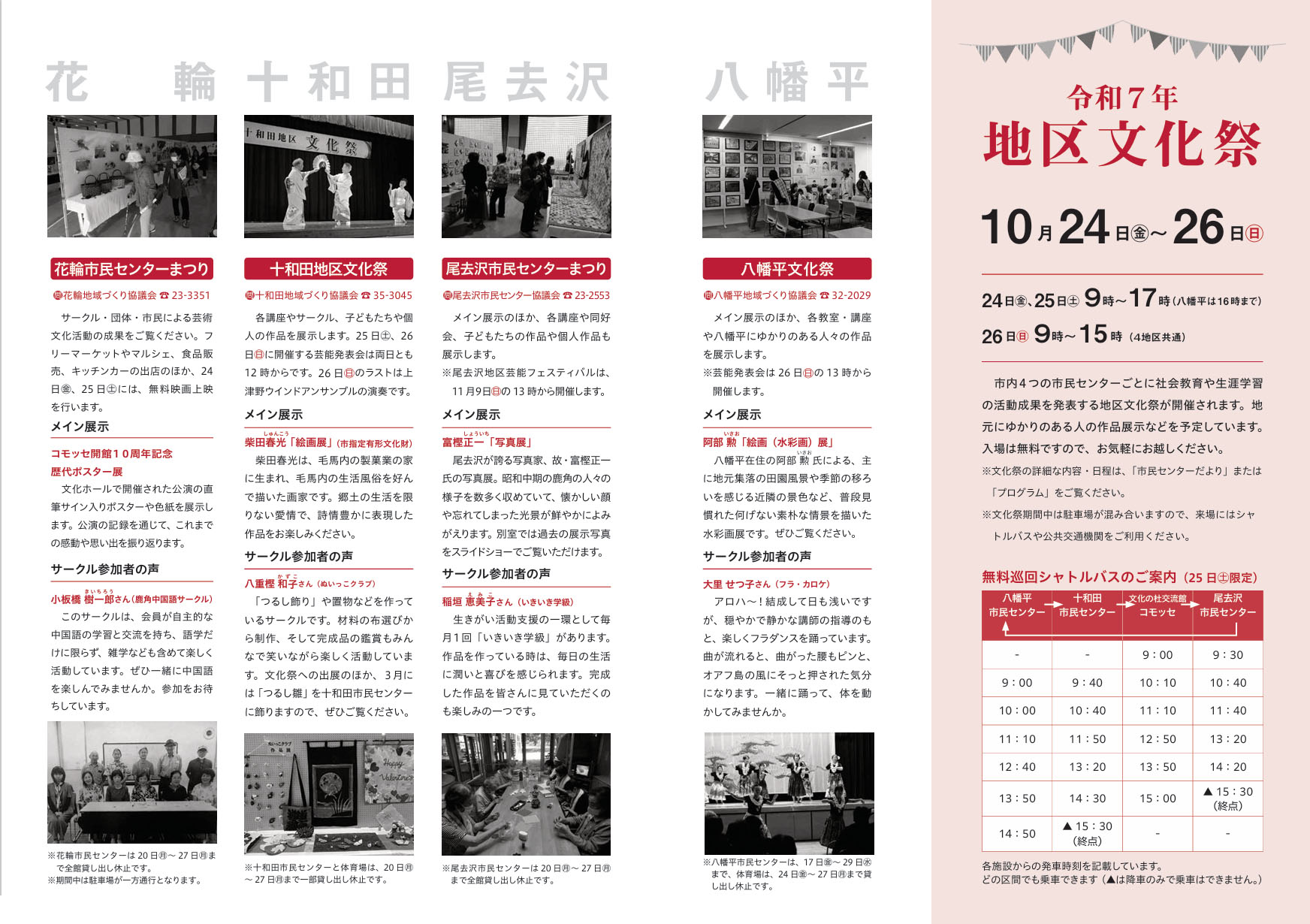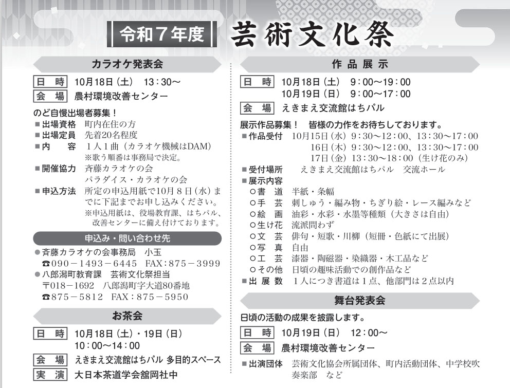 八幡平文化祭 | 鹿角市・ 八幡平市民センター | 2025/10/24(金)~2025/10/26(日) |