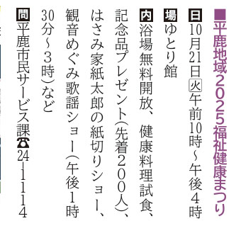平鹿地域 福祉健康まつり | 横手市・ゆとり館 | 2025/10/21(火) |