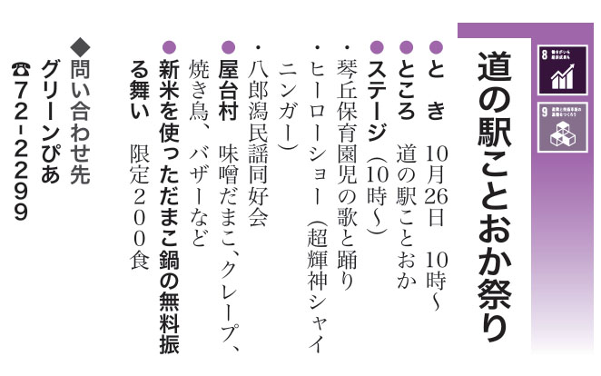 道の駅ことおか祭り | 三種町・道の駅ことおか | 2025/10/26(日) |