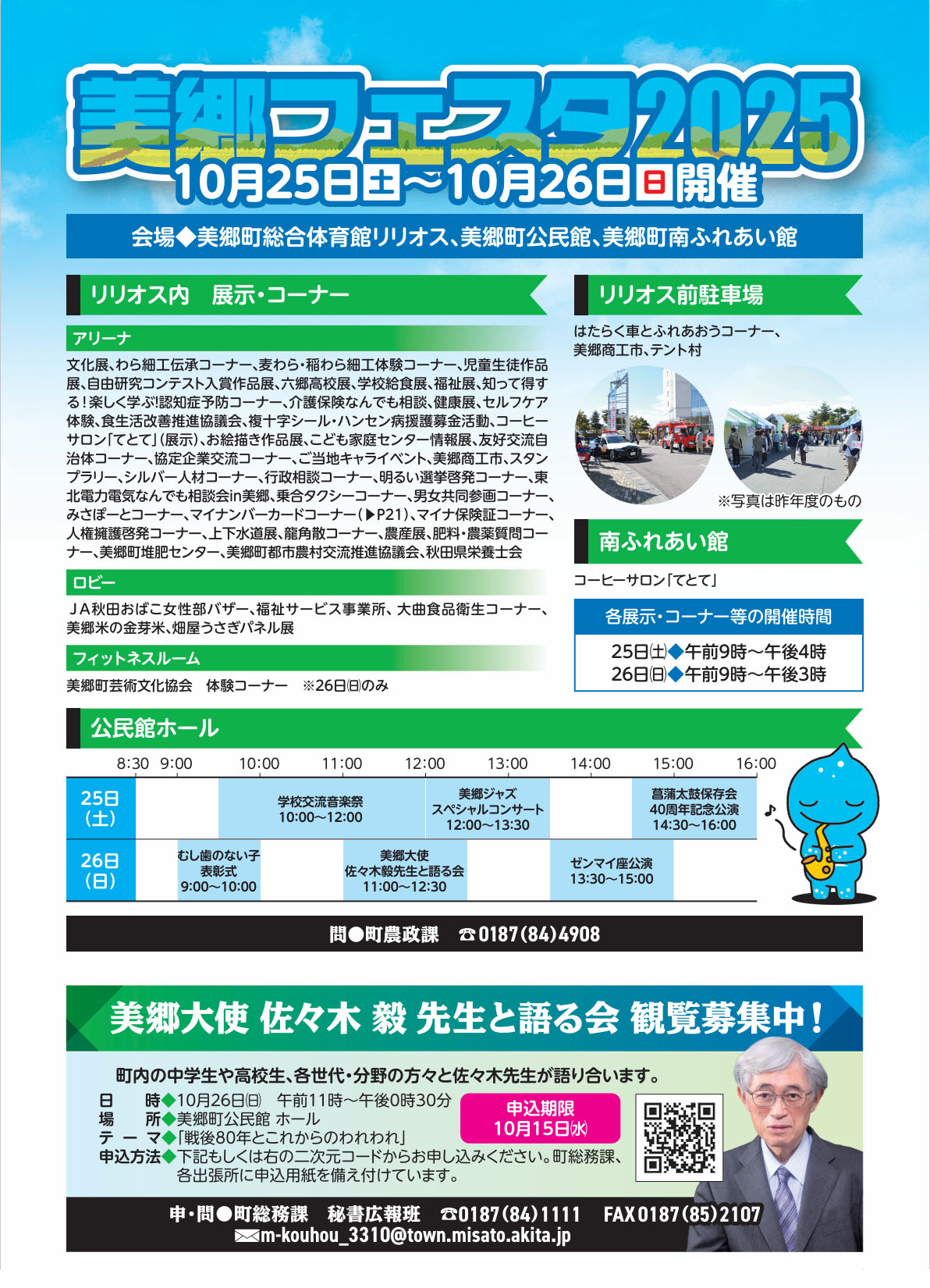 美郷フェスタ | 美郷町・総合体育館、 美郷町公民館、 美郷町南ふれあい館 | 2025/10/25(土)~2025/10/26(日) |